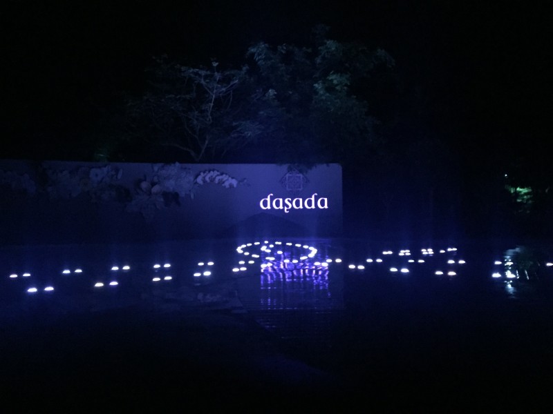 ที่เห็นข้างหน้าคือทางเดินไปสระว่ายน้ำ สะว่ายน้ำที่นี่ถูกออกแบบให้เข้ากับธรรมชาติ พื้นด้านล่างสระจะเป็นสีเขียว และมีรูปดอกไม้อยู่